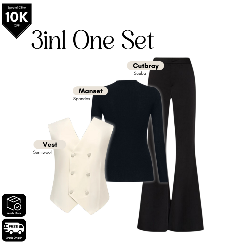 4 in 1 Set Wanita Kekinian | Vest + Manset + Cutbray + Bella Square | Outfit Effortless | GRL 129