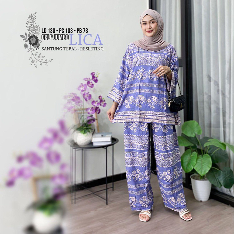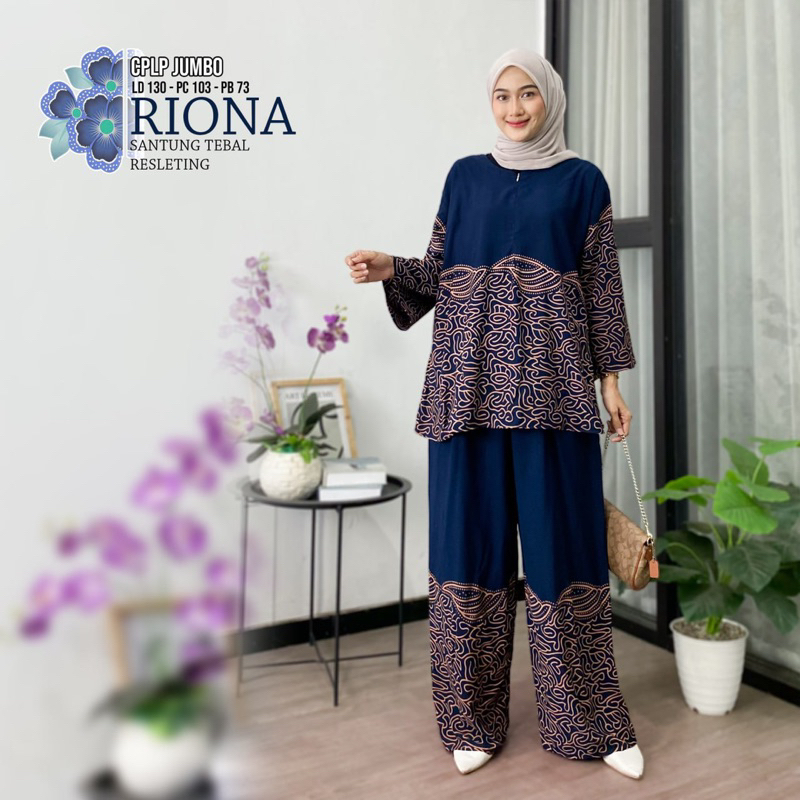 RIONA/Setelan CPLP Jumbo Terbaru/ Motif Batik - One Set Rayon Baju Muslimah All Size LD 130