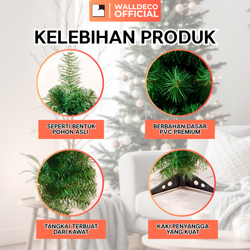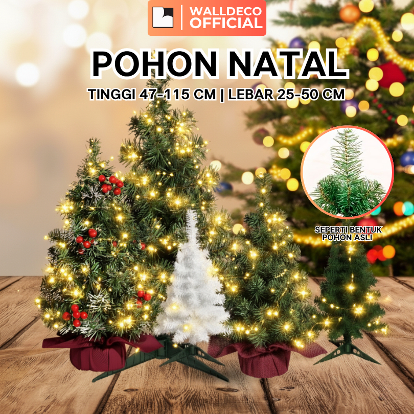 Pohon Natal + Lampu 115cm, 65cm, dan 45cm Christmas Tree Cemara Lebat Dekorasi Hiasan Natal