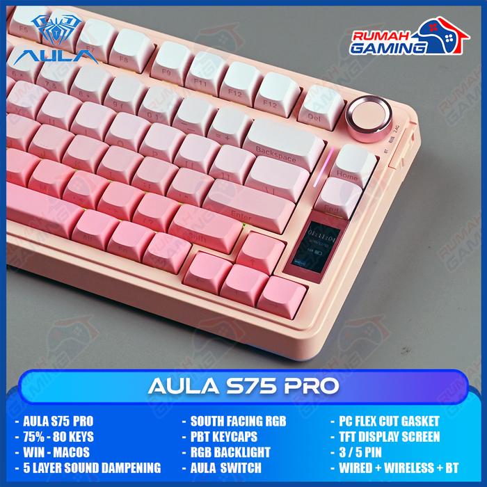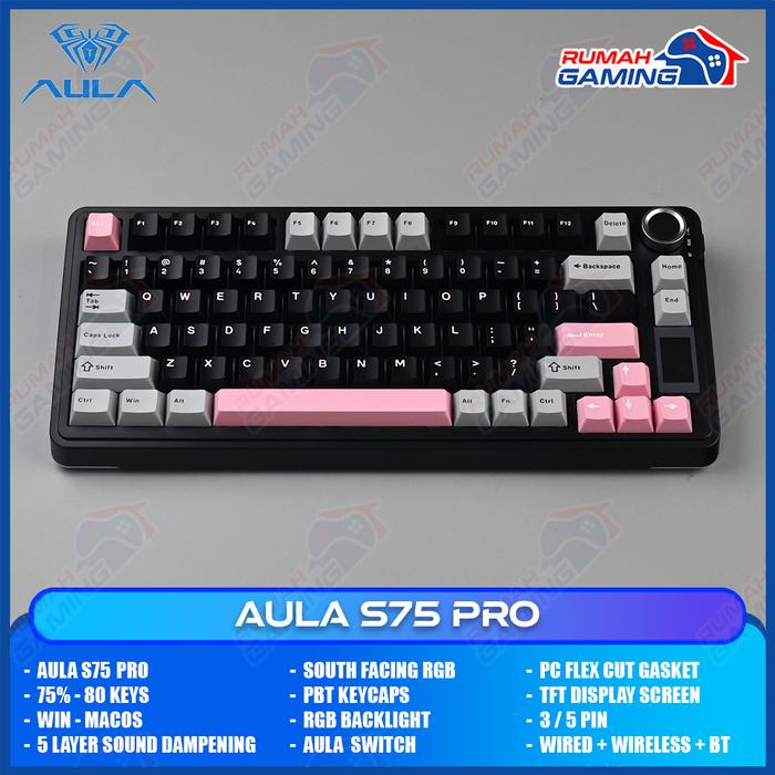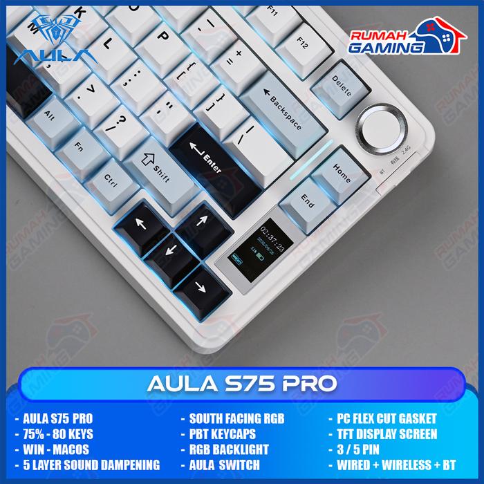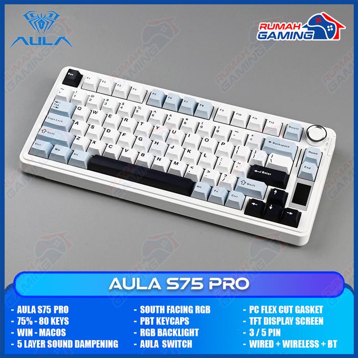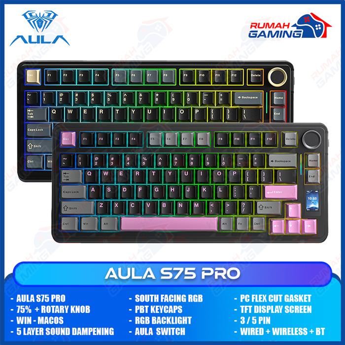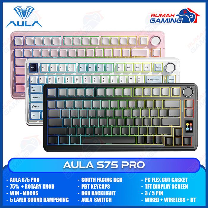 AULA S75 PRO - 75 PERSEN - 3 MODE CONNECTION - TFT DISPLAY - GASKET - SOUTH FACE- MECHANICAL KEYBOARD - STELLAR BLACK