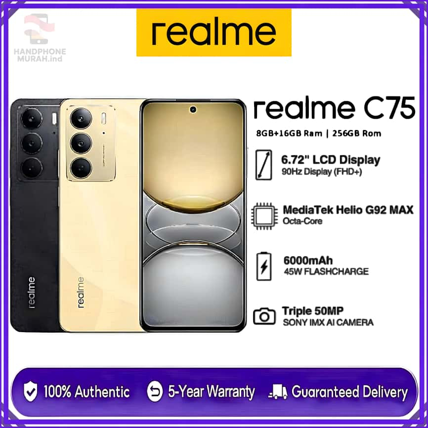 Realme C75 5G Smartphone 8GB 256GB Layar 6.74 Inch 50MP Kamera Baterai 5000mAh Garansi Resmi 5 Tahun