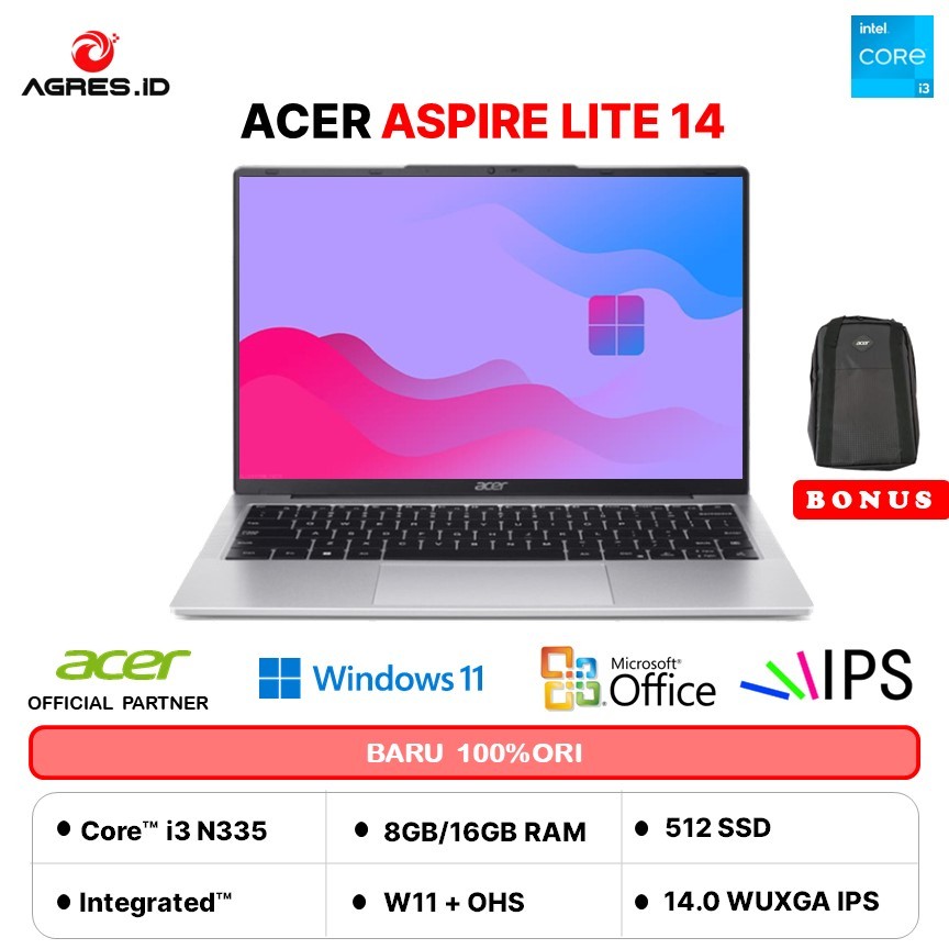 ACER ASPIRE LITE 14 AL14 INTEL CORE I3 N355 - RAM 8GB 512GB W11+OHS 14.0WUXGA IPS PINK -32P.359Z