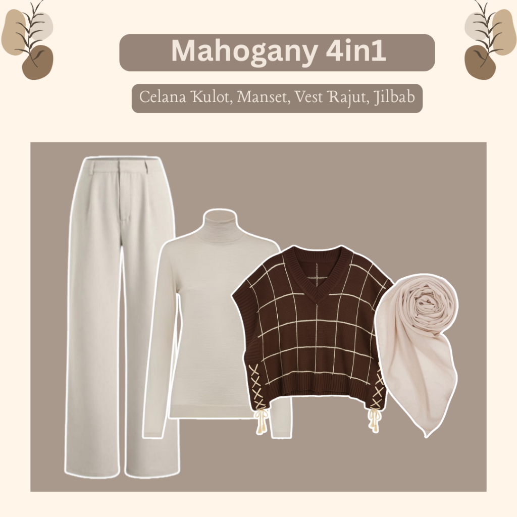 Setelan Rompi Wanita Kekinian (Vest Rajut - Manset - Celana Kulot - Jilbab) Mahogany Outfit HO109N
