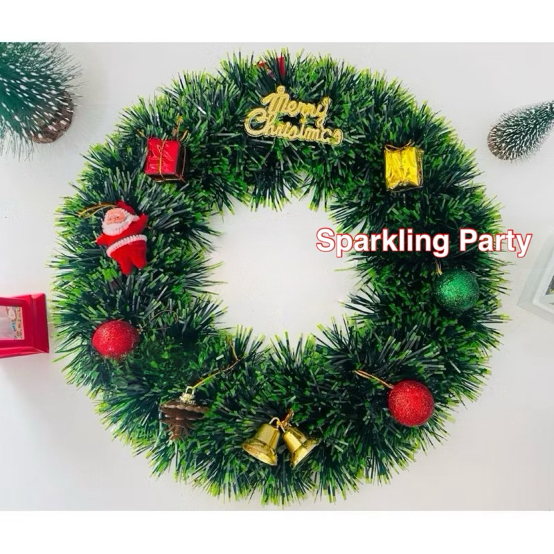 Krans natal DIY / krans natal hijau daun/paket set krans natal hijau salju/hiasan natal pintu krans
