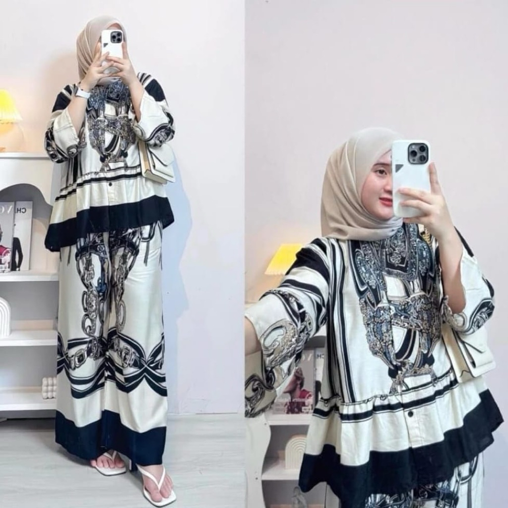 promo murah Rafella Set Rayon Rempel-One Set Rayon Rempel Setelan Wanita Kekinian model kancing dan resleting setelan celana kulot