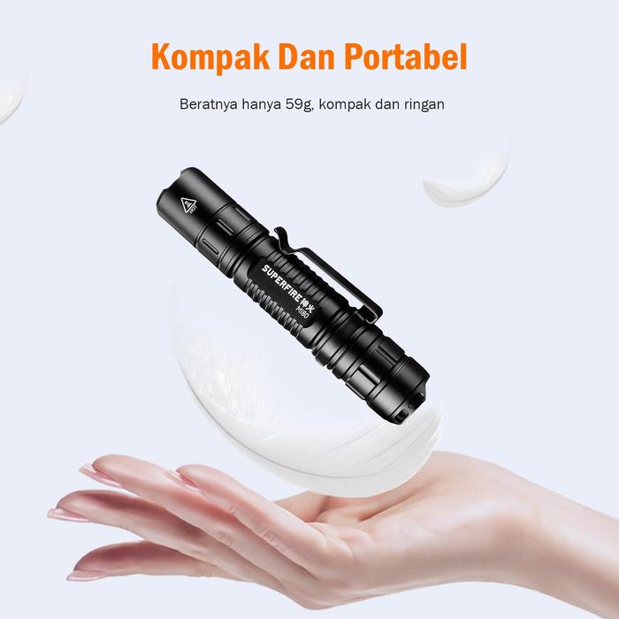 SUPERFIRE SENTER TAKTIS SUPER TERANG SENTER ISI ULANG PORTABEL COCOK UNTUK BERKEMAH MI80 - MI80 3W 2000MAH