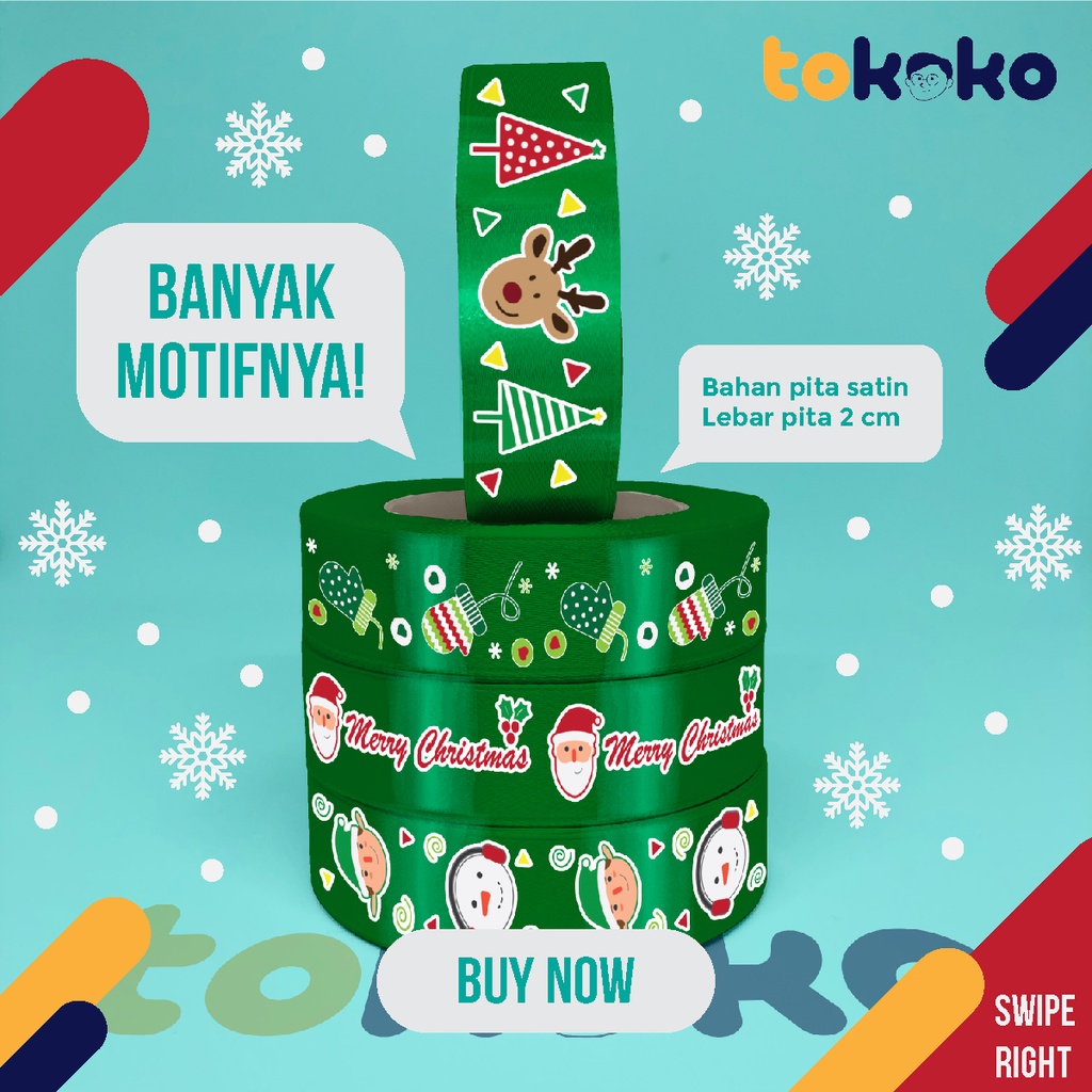 Pita Natal Per Meter untuk Dekorasi Hiasan Hampers Pohon Natal Aneka Motif Lucu