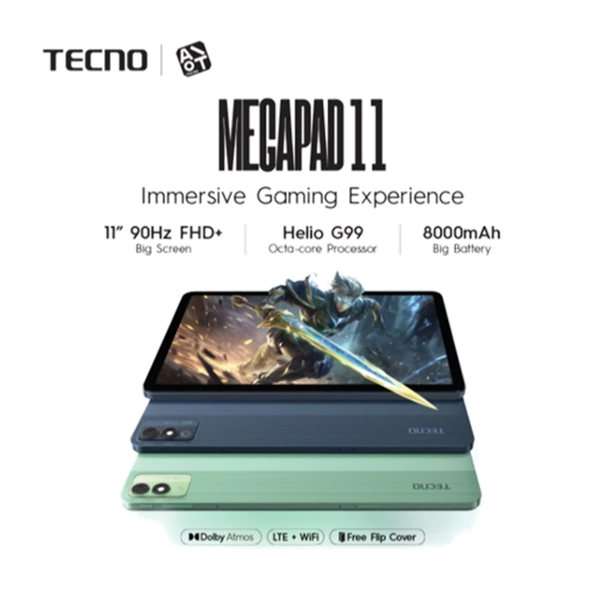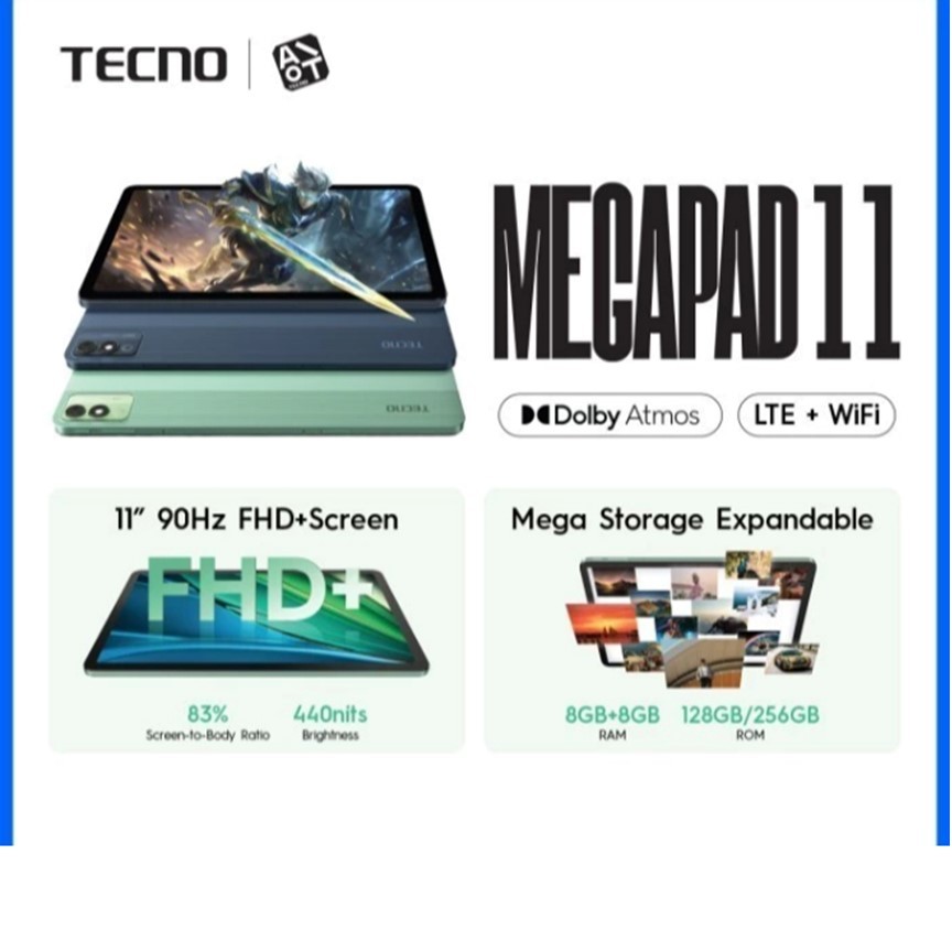 TECNO MEGAPAD 11 - RAM 8/256GB, 11inch Ultra Screen, Eye Care Mode, Sim Card + T-Flash, 8000mAh