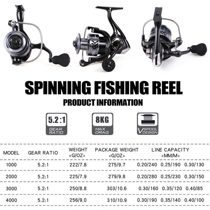 Sougayilang reel pancing 1000-6000seri 5.2:1 Rasio kecepatan reel spinning Max Drag 8kg Carp Reels for Sea Fishing