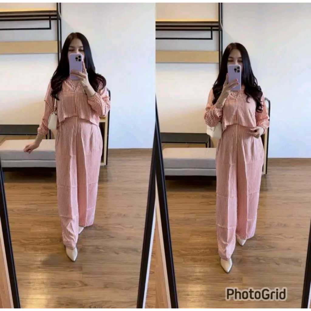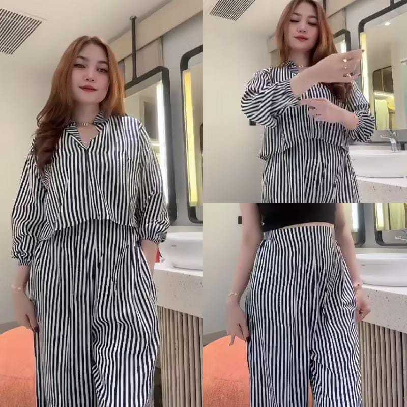 SET KULOT MOTIF GARIS SALUR BAJU SETELAN WANITA ATASAN CELANA KULOT CASUAL REMAJA KEKINIAN TERBARU