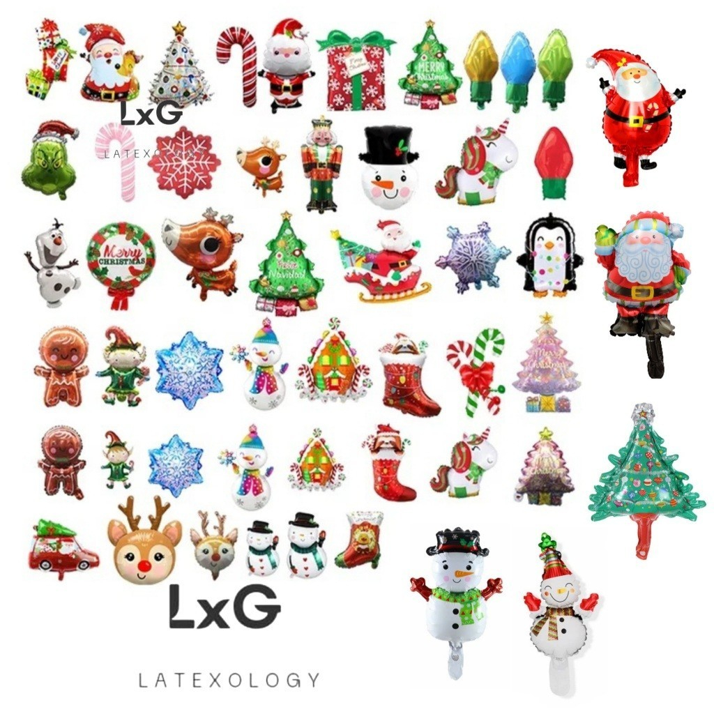 Balon Foil Natal, Christmas. Mini - Medium. Balon Natal Bulat, Snowman, Rudolph, Deer, GingerBread.