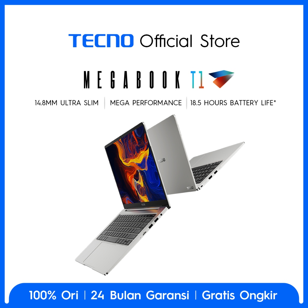 TECNO MEGABOOK T1 R5 - 16GB+512GB, AMD Ryzen 5-7430U, 100 PERSENSRGB Display, 75Wh Battery, 65W Type-C GaN PD Fast Charge , DTS X Ultra Immersive Sound, Windows 11, 14inch, Garansi 24 Bulan