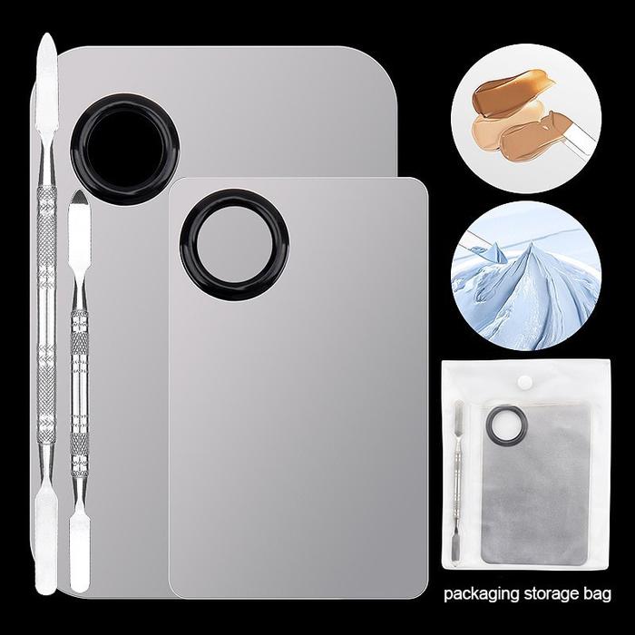 MIXING PALETTE STAINLESS UNTUK MAKE UP, KUTEK, DAN CAT ACRYLIC 1614 COCOK UNTUK PENGGUNAAN HIGIENIS HYGIENE DAN SPONS WAJAH - SQUARE