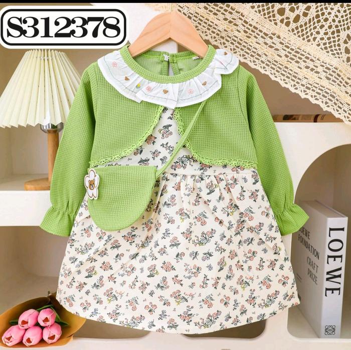 DRES BUNGA ANAK PEREMPUAN-GAUN ANAK PEREMPUAN -OVER OLL ANAK PEREMPUAN USIA 3 BULAN-4 TAHUN PEREMPUAN - PINK, S/M=USIA 3-12 BULAN