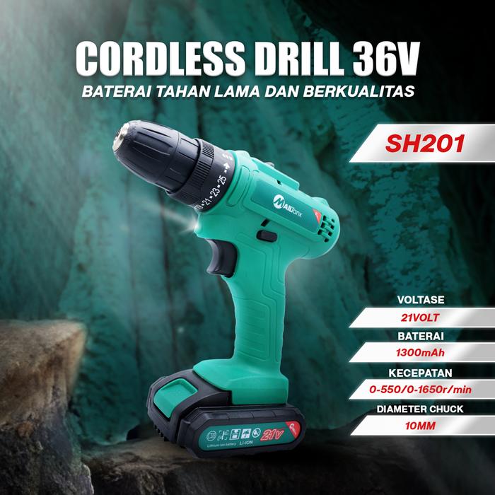 MESIN BOR BATERAI 21V CORDLESS DRILL MAILTANK SH201 UNTUK KAYU TRIPLEK BESI - SH201