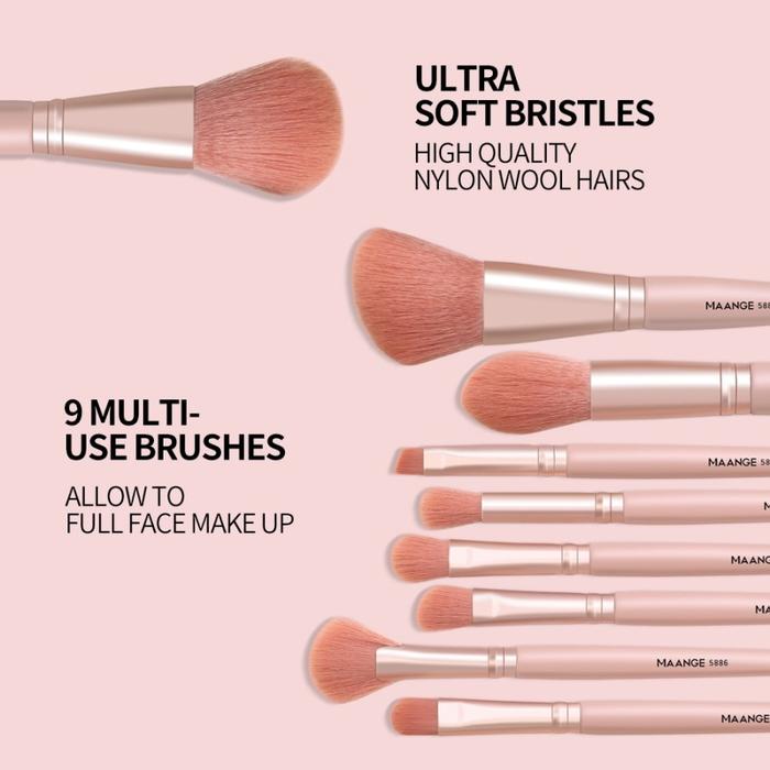 MAANGE 9 PCS MAKEUP BRUSH SET LEMBUT ALAT KECANTIKAN MAG5886 KUAS RIAS MERAH EYEBROW - CHAMPAGNE
