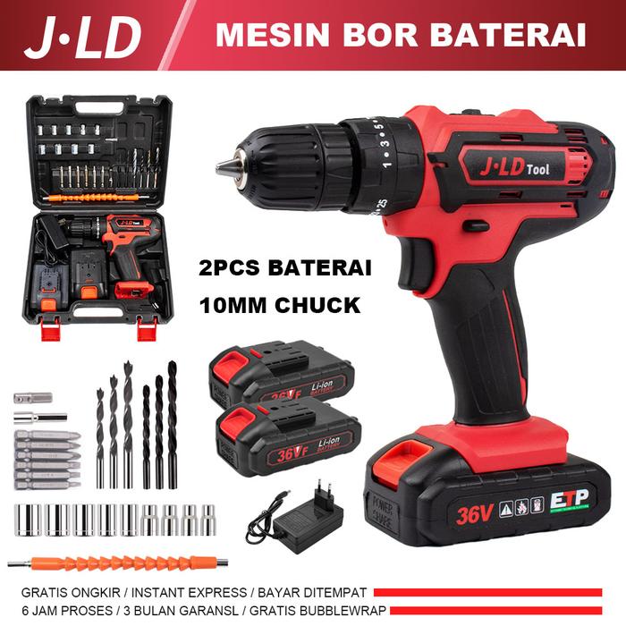 BOR CORDLESS JLD 36V BATERAI IMPACT DRILL TOOL KIT AKSESORIS LENGKAP - JLD 48V TOOLKIT SUPER LENGKAP