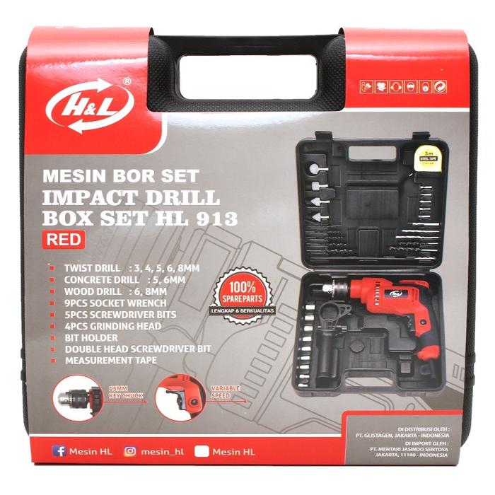 MESIN BOR LISTRIK SET H&L 13MM IMPACT DRILL BOX SET KOMPLIT HNL HL913 - BIRU