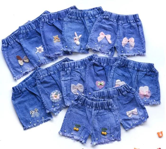 3 PCS.100 RB. CELANA PENDEK HOTPEN JEANS IMPORT ANAK CWEK RAWIS MUTIARA USIA 1-10 THN MOTIF RANDOM TERBARU CEWEK BAYI - HOTPEN RAWIS, 1-2 THN