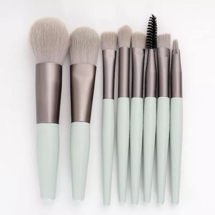 (KUAS MINI) KUAS MAKE UP SET 8 PCS EYESHADOW BIBIR ALIS SISIR POWDER PIPI MATA EYEBROW EYELASH LOOSE - GREY