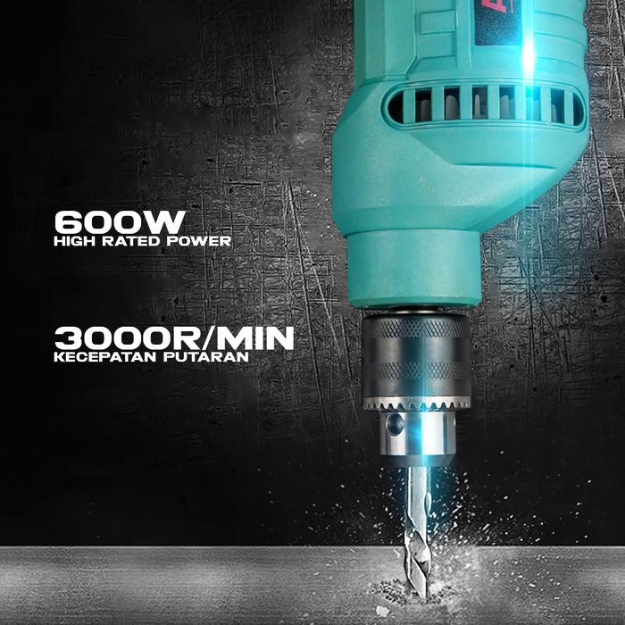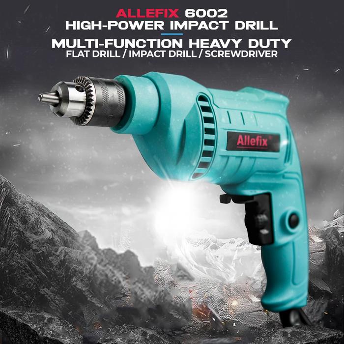 ALLEFIX BOR DINDING LISTRIK PORTABLE 10MM 600WATT DENGAN FITUR PENGATUR KECEPATAN DAN PUTARAN BOLAK-BALIK - 6002 - BIRU