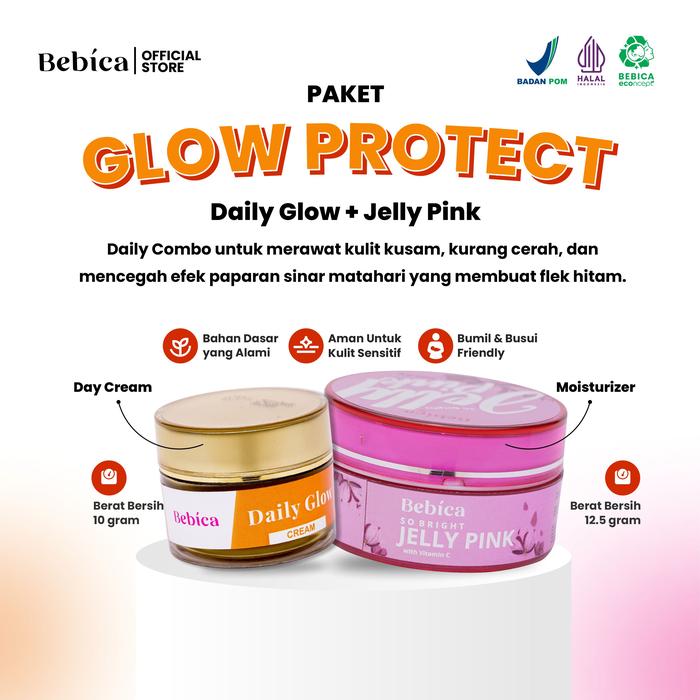 BEBICA PAKET GLOW PROTECT - DAILY GLOW + JELLY PINK PERAWATAN FACIAL WAJAH HITAM BERJERAWAT MENCERAHKAN MUKA