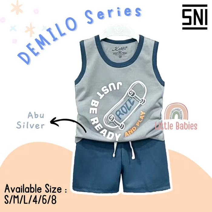 SETELAN SINGLET BAJU ANAK COWOK 1-8 TAHUN "DEMILO SERIES" / SETELAN BAJU ANAK KELFI - NAVY DEMILO, S
