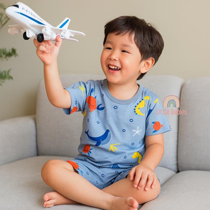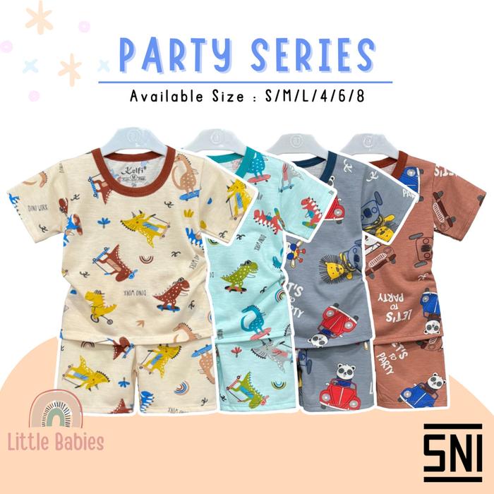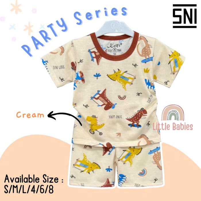 SETELAN BAJU ANAK COWOK PRINTING 1-8 TAHUN "PARTY EDITION" / SETELAN BAJU ANAK KELFI - PARTY CREAM, S