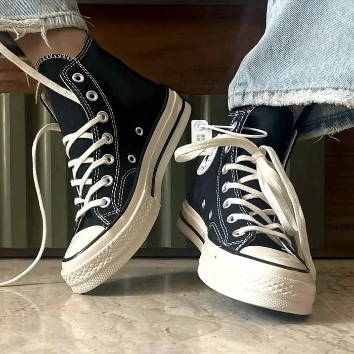 [Star]Sepatu Convress 70s High Black White untuk Pria Wanita - Canvas Tebal Kualitas Terbaik - Casual, Sneakers Hitam Pu