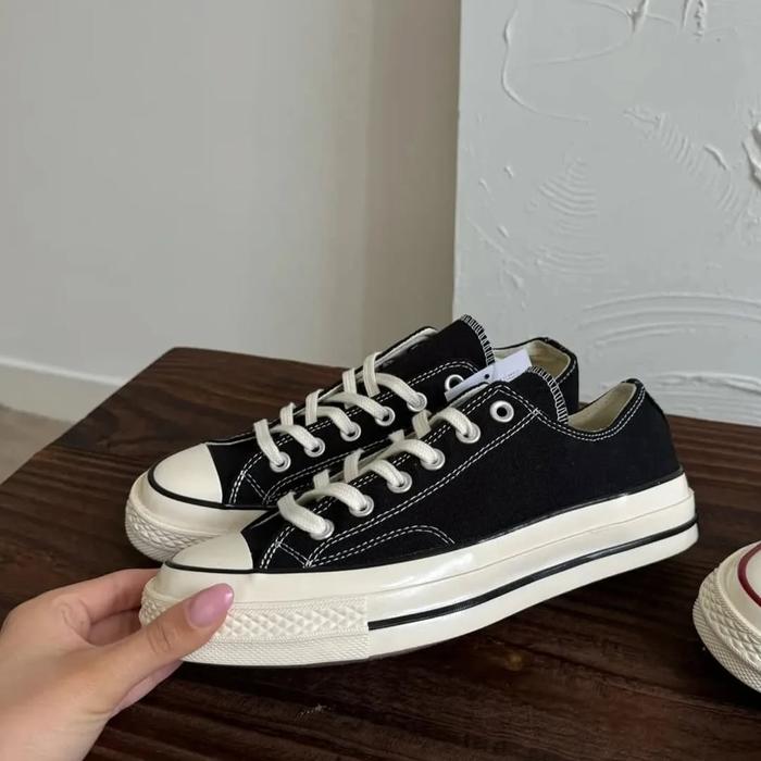 [Star]Sepatu Convers 70s Low Black White Sol Glossy Model Terbaru untuk Pria dan Wanita - Casual Shoes Sneakers Hitam P