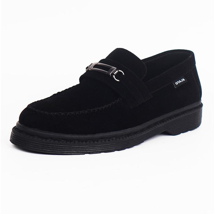 [Star]ELATO - Sepatu Loafers Pria Kasual Flat Shoes Suede Hitam Coklat - Wilson - Hitam, 39