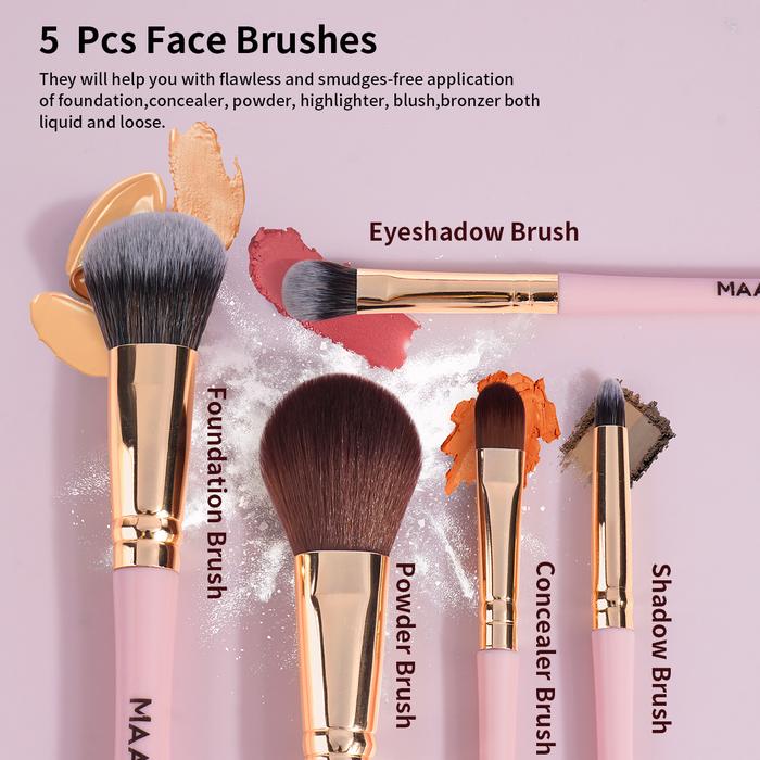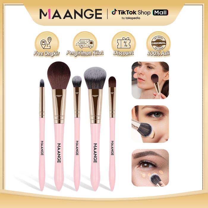 MAANGE 5 PCS MAKEUP BRUSH SET PREMIUM KUAS BEDAK BLUSH EYESHADOW BRUSH KIT 52184 - PINK