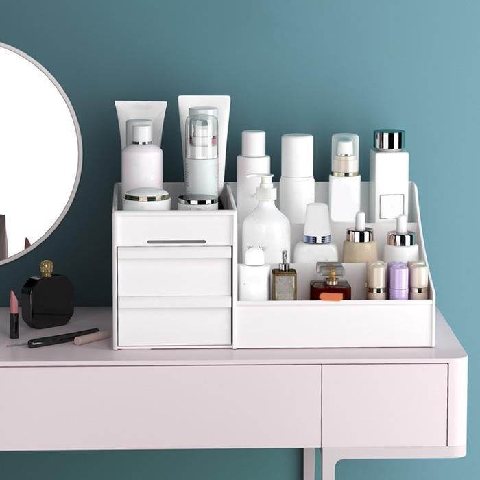 SET RAK MEJA 2 LACI KERJA STATIONERY MAKE UP KOSMETIK ORGANIZER SUSUN - BIRU