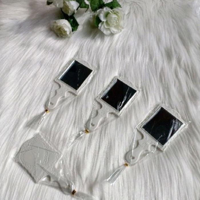 50PCS SOUVENIR CERMIN GAGANG PUTIH MOTIF CANTIK KEMAS PLASTIK - -, -
