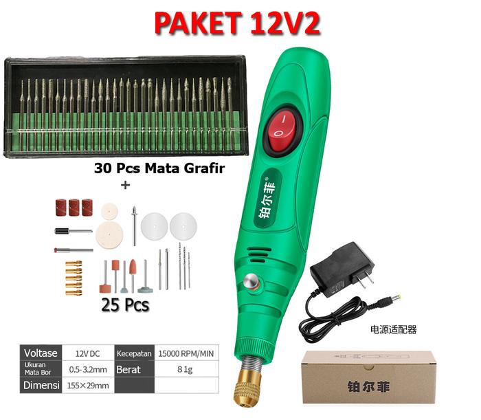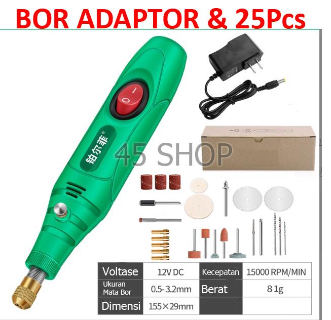 BOR MINI 12V DC DRILL ELECTRIC ENGRAVER GERINDA ALAT UKIR DEGUQMNT - PAKET BASIC