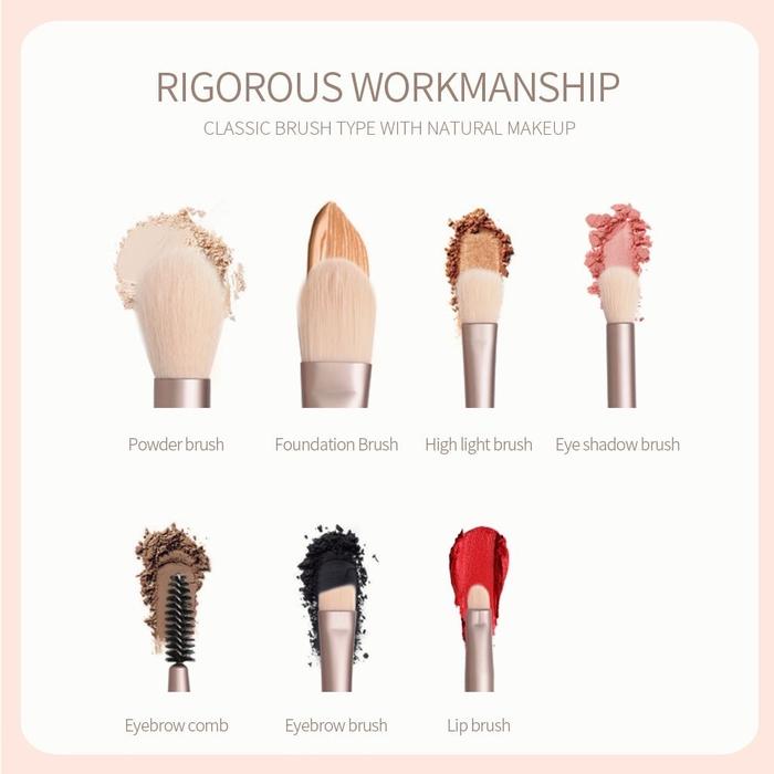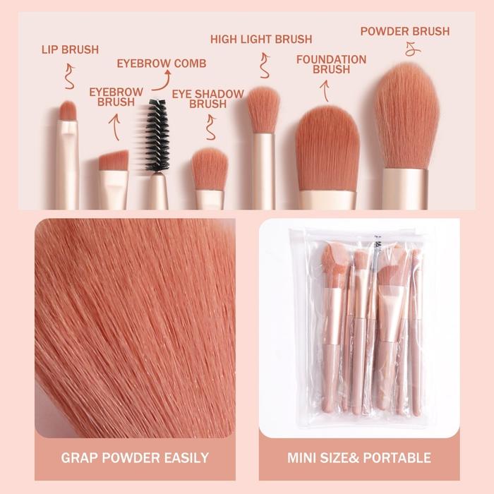 8 PCS KUAS MAKEUP MINI SET KUAS BIBIR ALIS SISIR EYESHADOW POWDER FOUNDATION STABILO MAG5857 BIRU PINK APRICOT - PINK