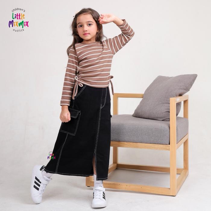 MIXMIX LONG SKIRT CARGO - HIGHWAIST ROK SPAN PANJANG CARGO JEANS FASHION KANCING ANAK PEREMPUAN 2 - 9 TAHUN - LSC - BLACK, M