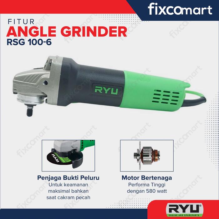 RYU ANGLE GRINDER RSG 100-6 / MESIN GERINDA TANGAN 4 INCH 4" / GURINDA / GRINDA - RSG100-6