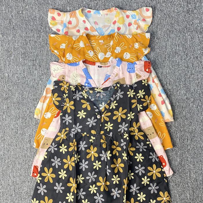PAKET HEMAT 4 PCS ( PILIH MOTIF FULL OBRAS ) DRESS BAYI ANAK PEREMPUAN USIA 0 - 3 TAHUN | BAJU BAYI CEWEK RAYON VISCOSE PREMIUM - SE 01, S ( 0 - 6 BULAN )