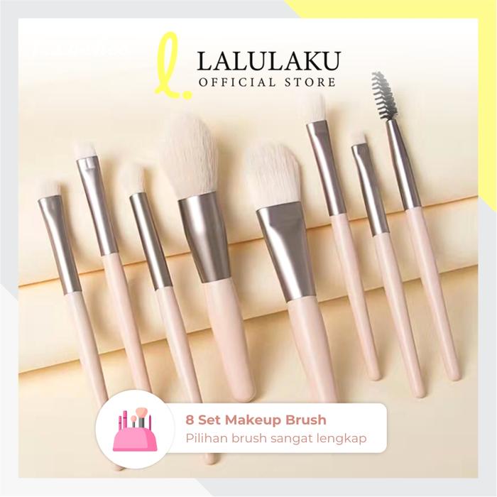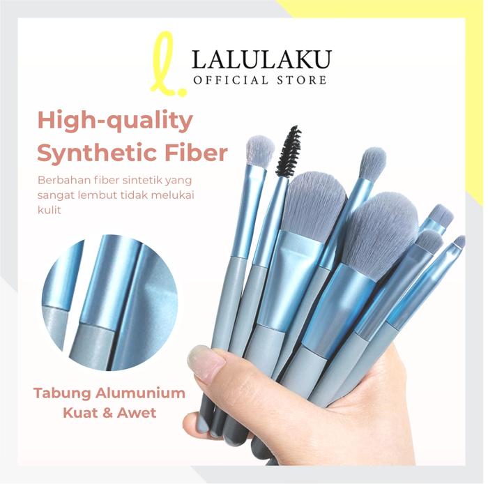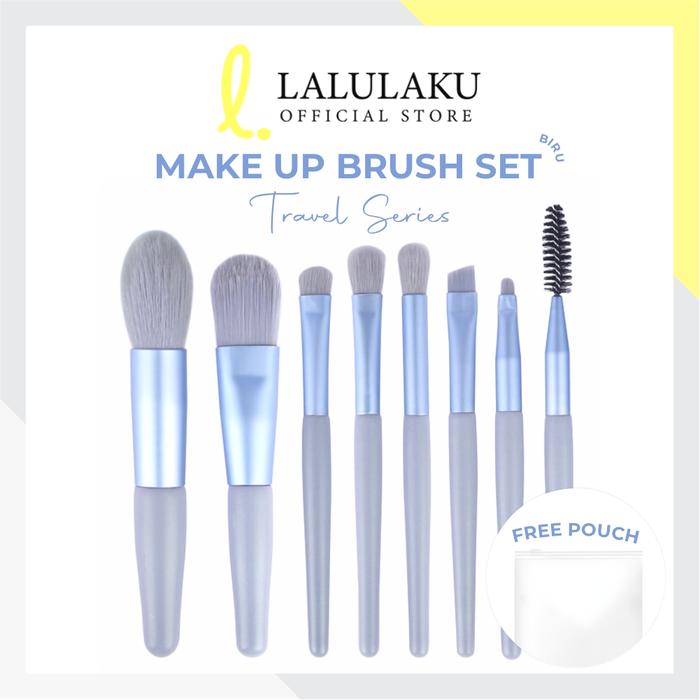 KUAS MAKE UP SET ISI 8 PCS / MAKE UP BRUSH MINI TRAVEL 8 IN 1 BIRU HIJAU - KREM