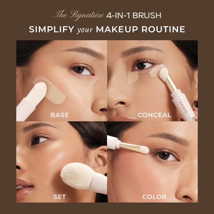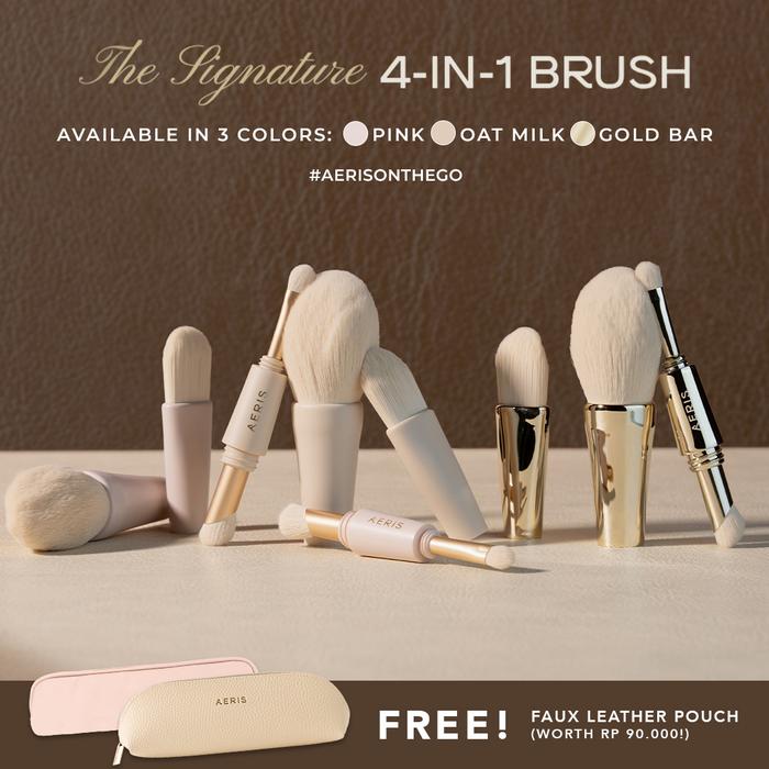 AERIS BEAUTÉ THE SIGNATURE 4-IN-1 BRUSH | BRUSH MAKE UP LEMBUT PREMIUM MULTIFUNGSI 4IN1 TRAVEL PORTABLE UNTUK BEDAK FOUNDATION CONCEALER EYESHADOW BERSERTA POUCH - 4-IN-1 BRUSH [WITH POUCH]