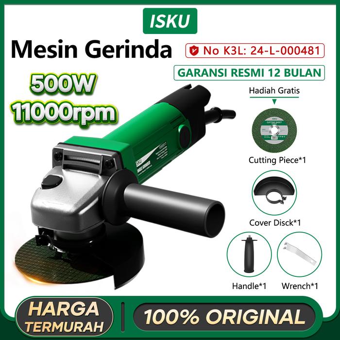 ISKU GURINDA TANGAN 500W/220V GRINDA TANGAN GRINDER DENGAN SERTIFIKASI K3L DAN MATERIAL BERKUALITAS DESAIN ANTI DEBU DAN DISIPASI PANAS CEPAT - MESIN GERINDA