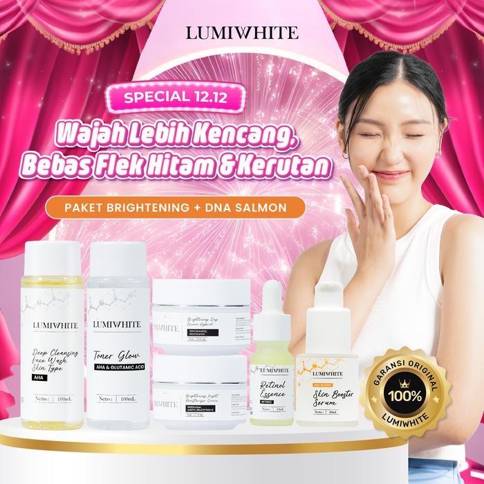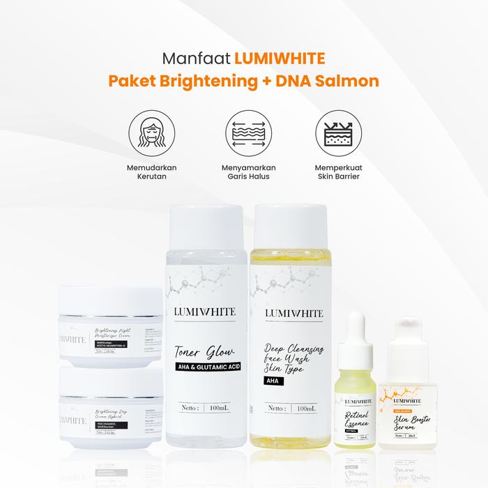 LUMIWHITE PAKET BRIGHTENING + SERUM DNA SALMON [ FACEWASH + TONER + DAY CREAM + NIGHT CREAM + RETINOL ESSENSE + SERUM DNA SALMON]