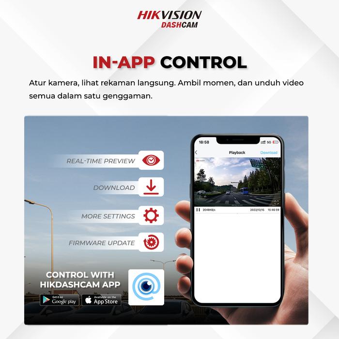 HIKVISION C200S Dashcam 1080P WiFi Modul Dual Channel Audio In & Out App Integration Car