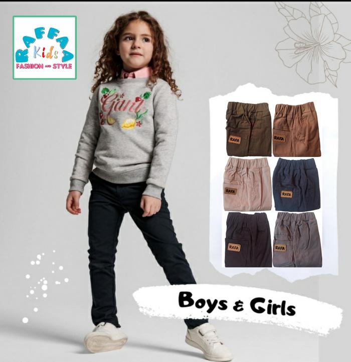 CELANA PANJANG ANAK PREMIUM CHINO LAKI-LAKI PEREMPUAN BAHAN MELAR TEBAL SLIM-FITTING POLOS FASHION - HITAM, S (1-2THN)