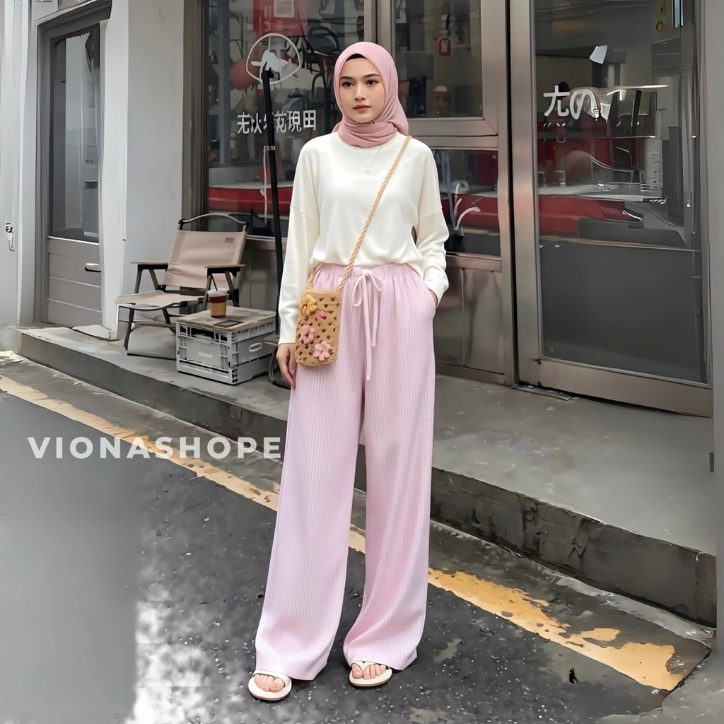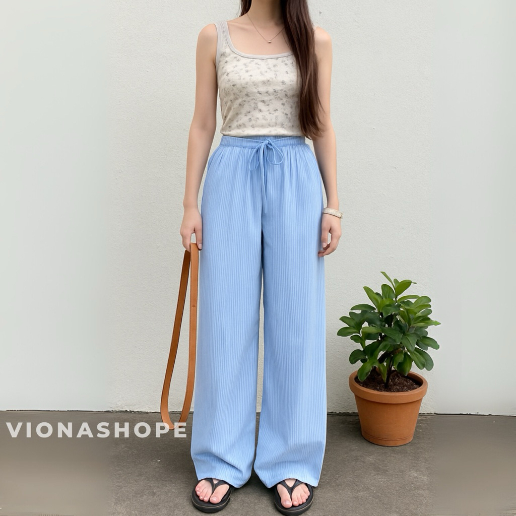 Everyday Pants Stripe Pants Celana Panjang Wanita Baggy Kantor Kuliah Motif Garis Kulot stripe Murah Gratis Ongkir