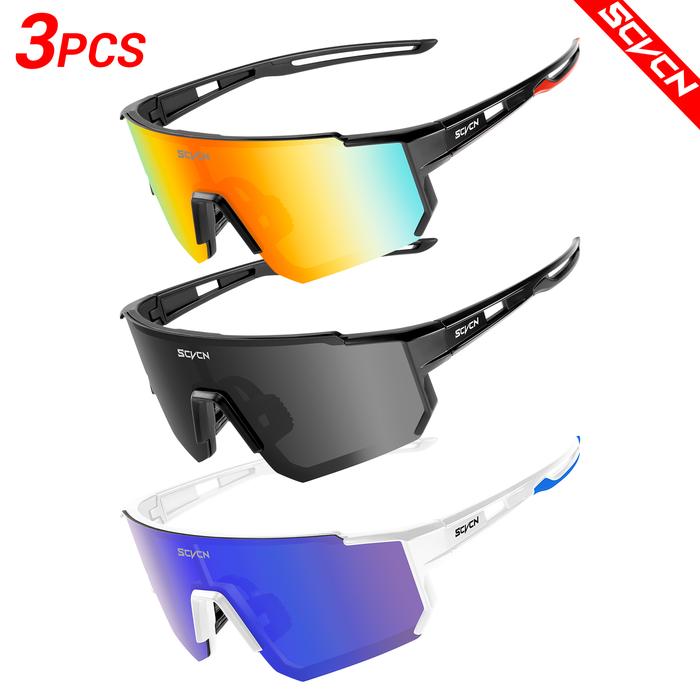 SCVCN 3PCS SET KOMBINASI KACAMATA BERSEPEDA OLAHRAGA LUAR RUANGAN MOTOR MTB MENGEMUDI MENDAKI BASEBALL PERLINDUNGAN UV400 KACAMATA HITAM MODE - DZ-S1411-B-010408