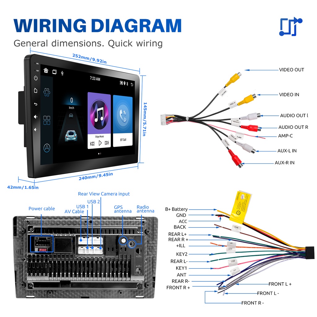 ESSGOO Head Unit Android 14 4GB+64GB 7/9/10 Inch 2Din Wifi GPS Wireless Carplay Bluetooth Universal