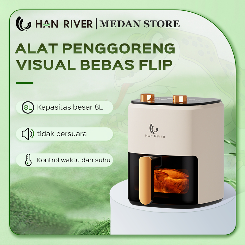 HAN RIVER Medan Air Fryer 8L Air fryer Multifungsi 650W Penggorengan Udara Visual