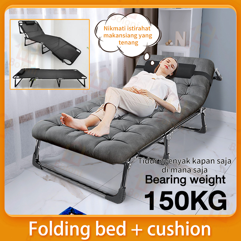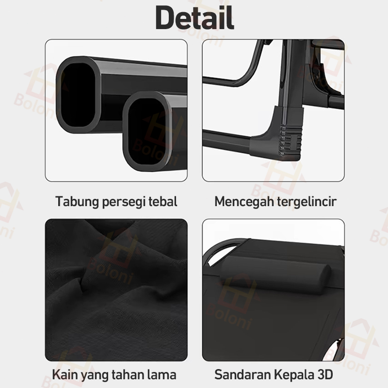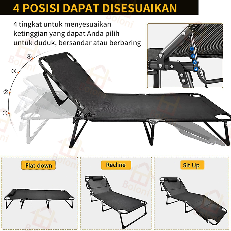 Kursi Malas Lipat - Kapasitas 300Kg & Anti Rayap, Nyaman Untuk Tidur Di Balkon/Kosan, Bonus Bantal Leher + Penutup Mat+K